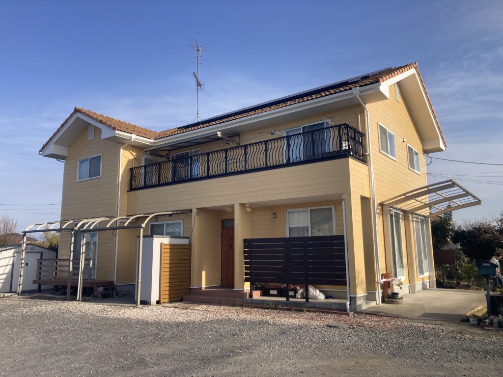 もともとの赤系統の色から、黄色系統へと大きく変更して、爽やかな仕上がりの外壁にできたと思います。屋根とのコンビネーションもいいバランスになりました。