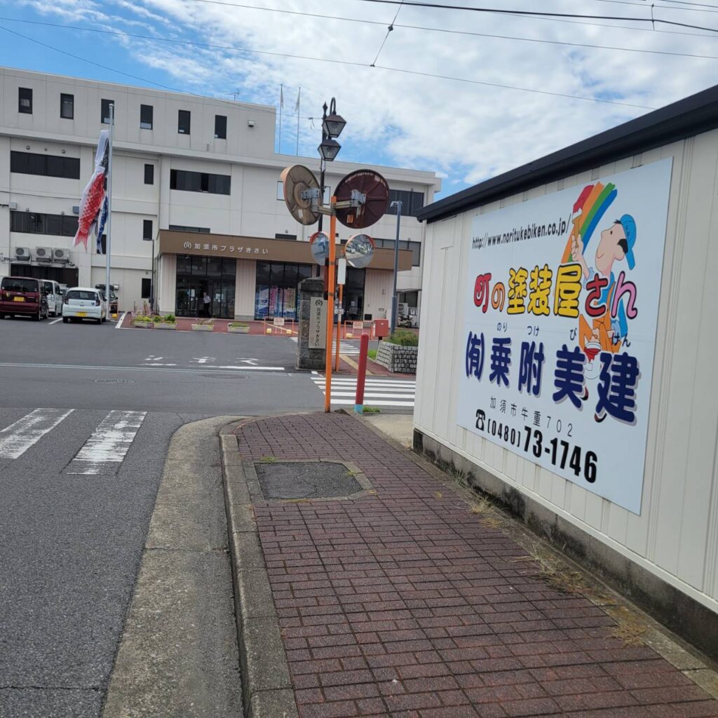 加須市役所騎西支所のすぐそばに乗附美建の看板があります